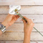 You need only two phalaenopsis orchid blossoms for the bouquet. The rest of the blossoms you can use for boutonnieres, corsages and bridesmaid bouquets.